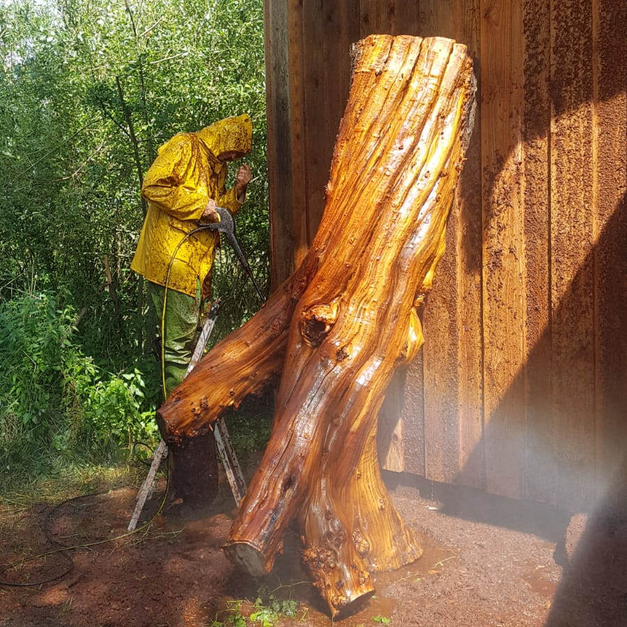 Da ich sehr großen Wert auf Nachhaltigkeit lege, nehme ich Holz aus der Natur, das schon auf natürlichem Weg „gestorben“ ist und durch meine Bearbeitung weiterlebt. Meine Ambition ist es, das Einzigartige in jedem Holz zu bewahren und trotzdem der Idee Gestalt zu geben. Zu jedem Werkstück kann ich die Koordinaten des Standortes vom Baum, aus dem es stammt, angeben.