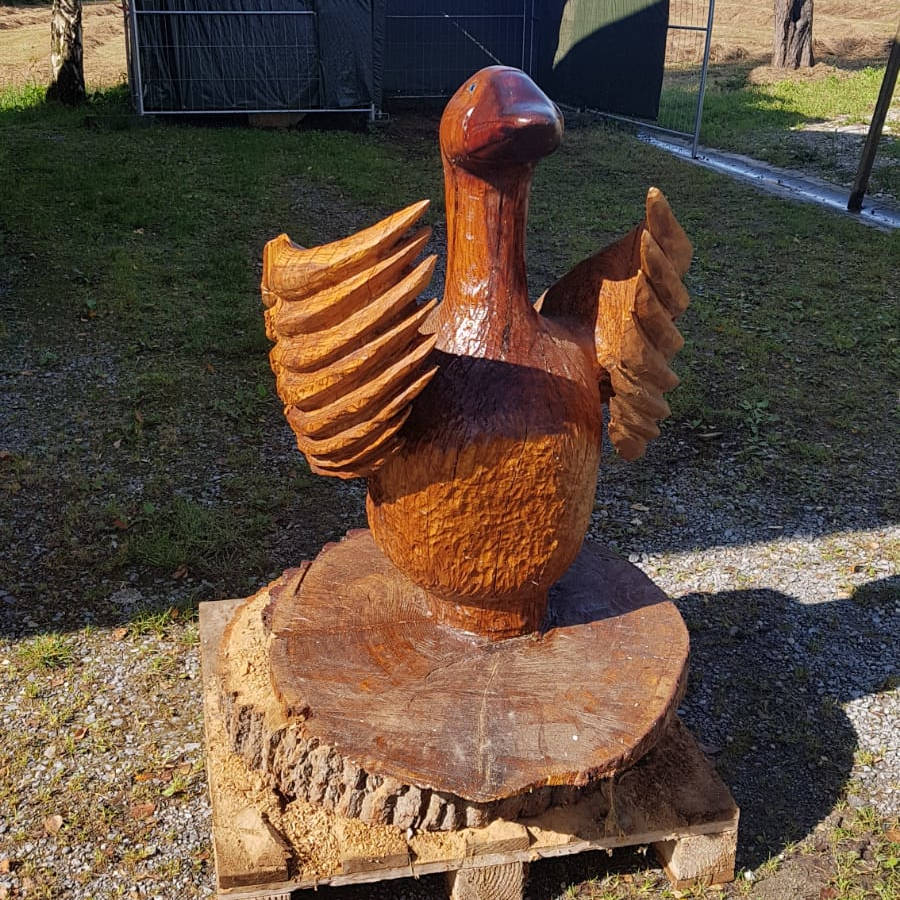 Ich nehme gern Auftragsarbeiten an wie z. B. Schnitzerei von Figuren mit der Motorsäge und fertige individuelle einmalige Möbelstücke nach eigenem Wunsch an.
